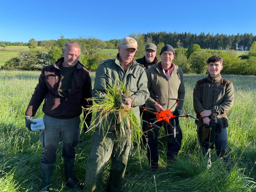 Die Usinger Jäger suchen mit großem persönlichen Einsatz die Wiesen und Felder ab um möglichst viele Kitze vor den Tod durch Ausmähen zu retten.