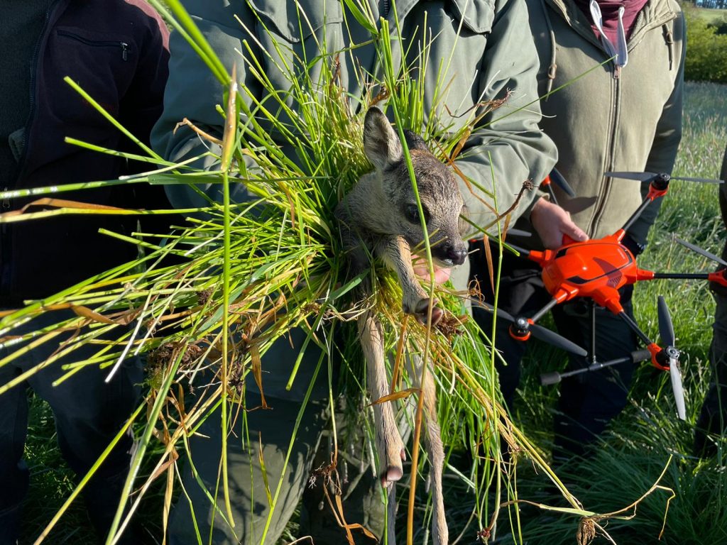 Während die kleinen Vögel meistens noch nicht wegfliegen können und so zur Beute werden, reagieren Rehkitze ganz anders. Sie können zwar schon laufen, doch bei einer vermeintlichen Gefahr ducken sie sich, und das mit Vorliebe in Feldern und Wiesen. Da sie noch keinen eigenen Geruch haben, können sie so beispielsweise vom Fuchs nicht wahrgenommen werden. Er läuft buchstäblich an ihnen vorbei, zumal die Rehkitze regunglos liegen bleiben. Das ist für viele aber der Tod, wenn die Landwirtschaft mit der Feldernte beginnt. Gehächselt, geschreddert, Verstümmelungen sind oftmals die Folge, es sei denn der Landwirt sucht das Feld vorher ab. Für viele extrem mühsam, weshalb die Jägervereinigung Usingen nun Drohnen gekauft hat, die vor der Heu- und Silo-Ernte zum Einsatz kommen können.
