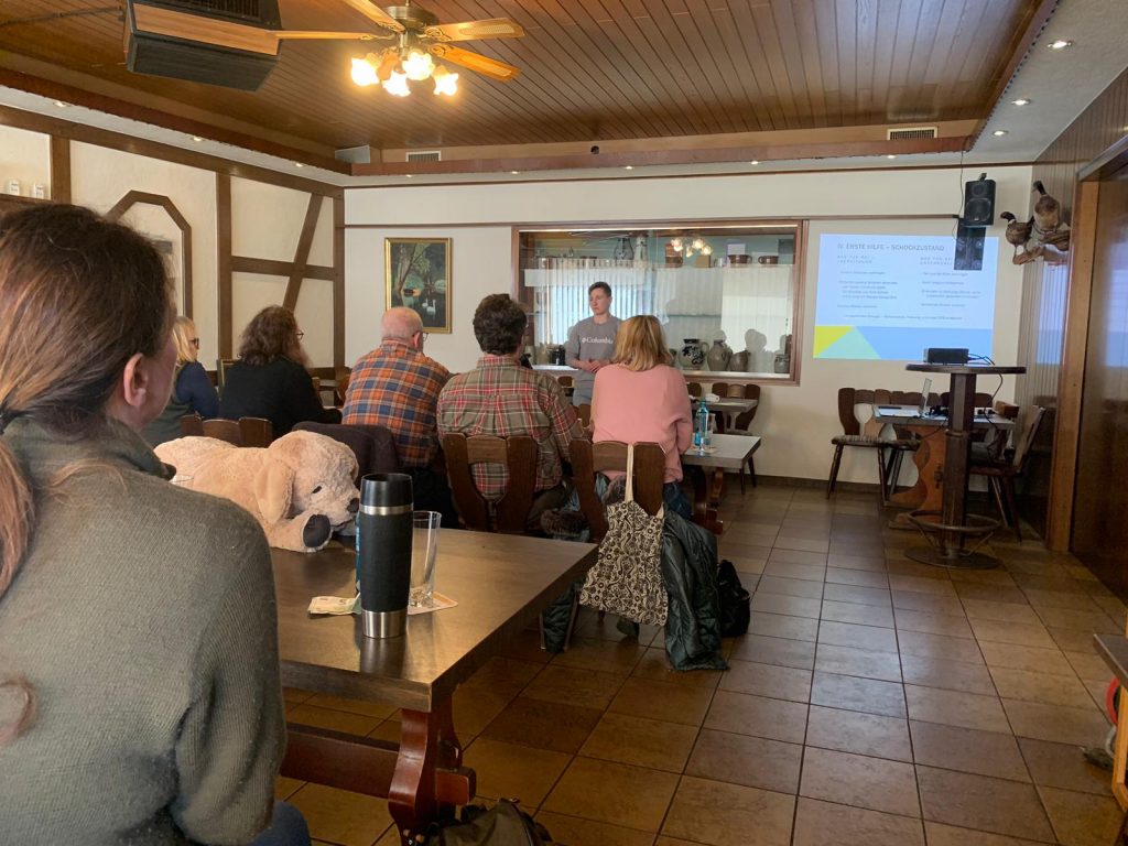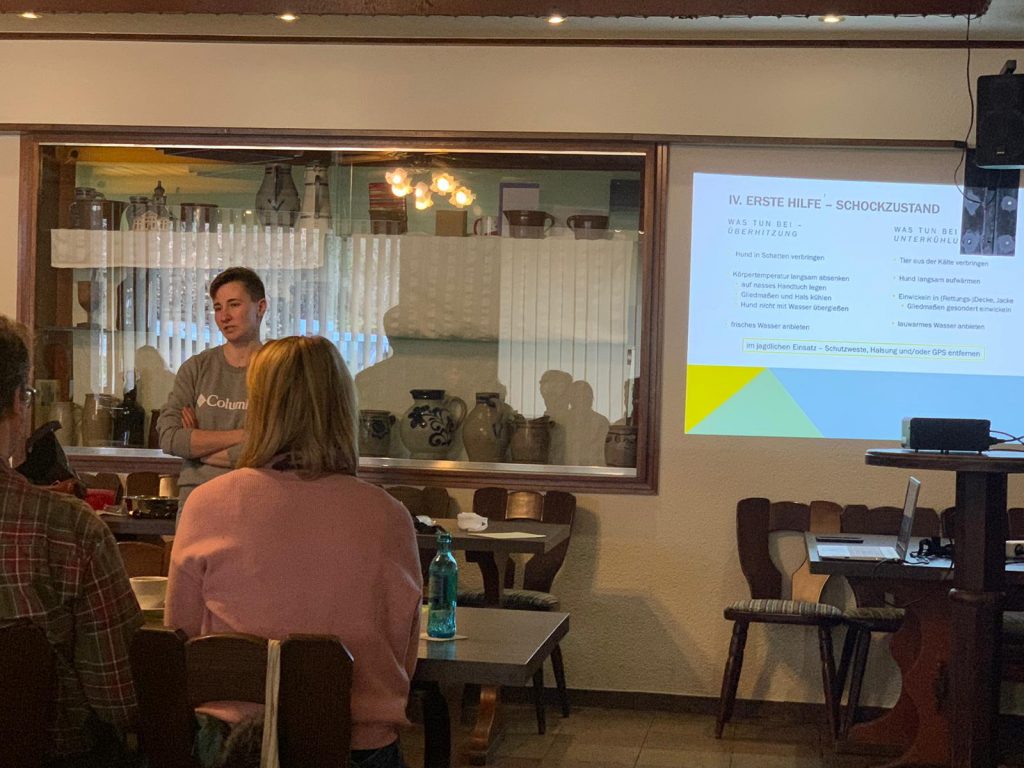 Nach der Begrüßung der 15 Teilnehmer und Gäste durch Christoph Fandel hat die Tierärztin Miriam Loos, Mitglied der Jägervereinigung, Jagdgebrauchshundeführerin und aktive Jägerin, über dieses spezielle Themengebiet referiert. Die sehr gut vorbereiteten Ausführungen von Loos sind praxisorientiert und die Inhalte hochinteressant gestaltet.