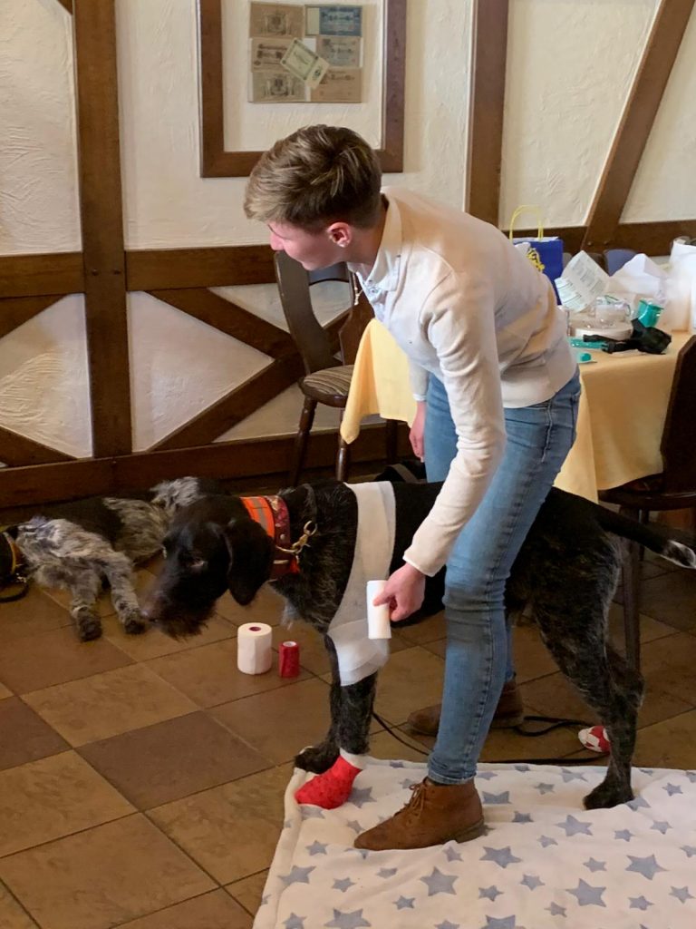 Am 26.02.22 ist im Rahmen der 2-G plus Regeln von der Jägervereinigung in ein „Erste-Hilfe-Kurs“ für Jagdgebrauchshunde durchgeführt worden.