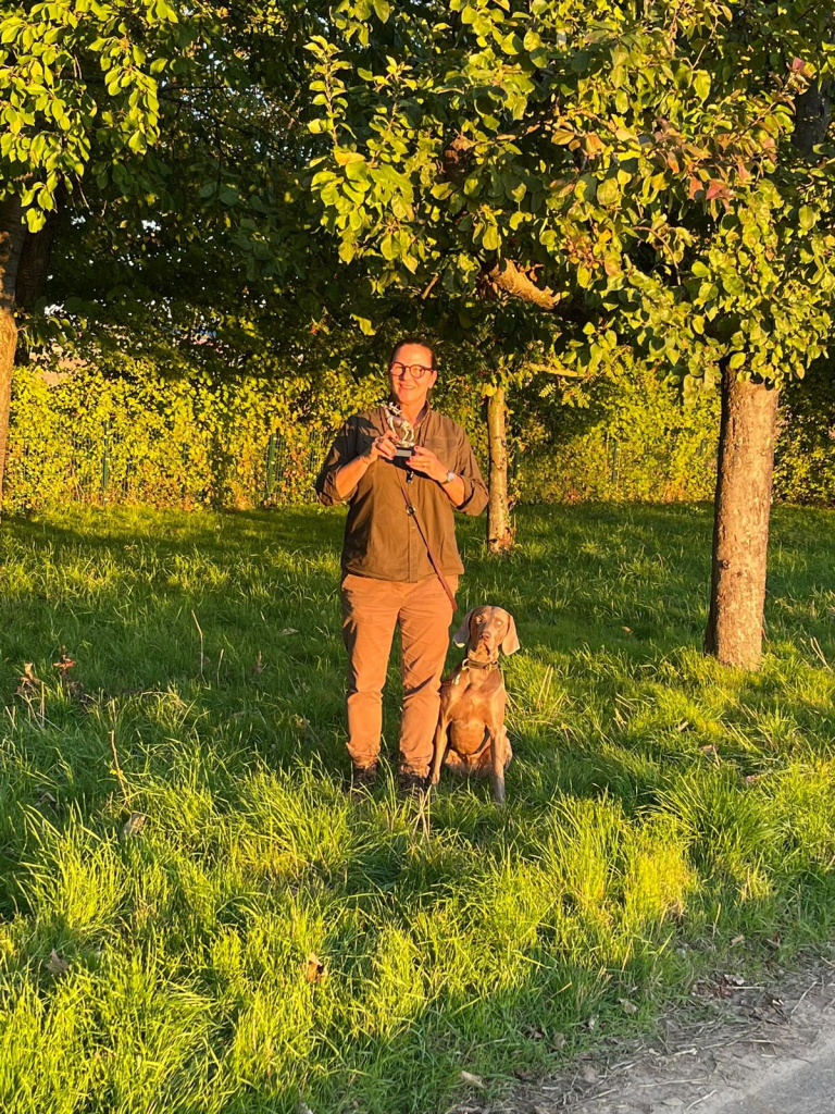 Irina Tribukait hat 2021 begonnen ihre Weimaranerhündin Audrey vom Bischdorfer See in unserem Lehrgang auszubilden. Im selben Jahr hat Irina ihre Hündin sehr erfolgreich zur VJP im Frühjahr und zur HZP im Herbst geführt.