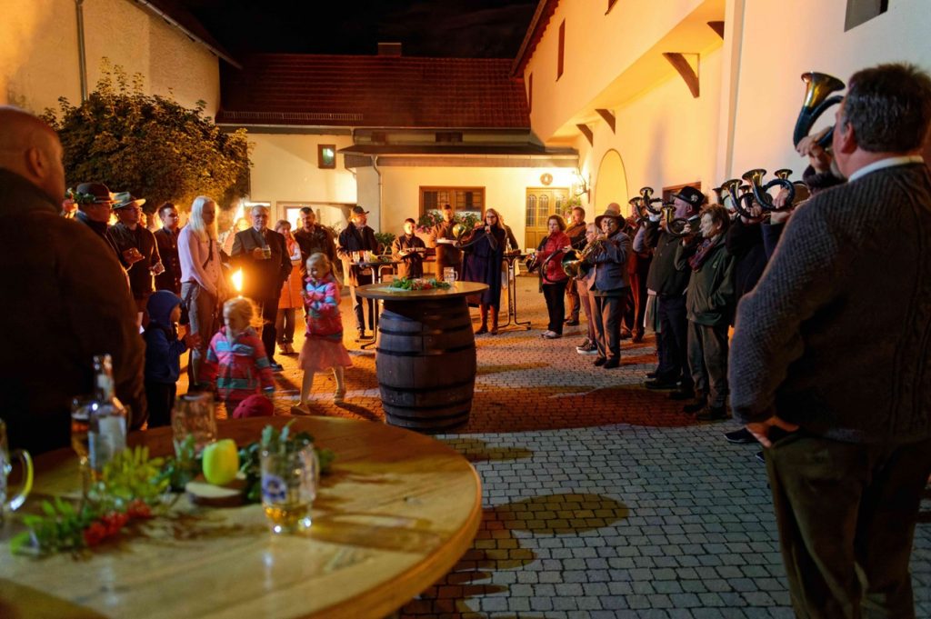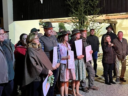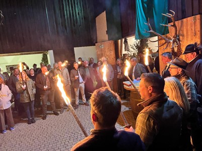 Nach dem formalen Teil würdigten Uli Kremer und die Bläser die Jungjäger mit der Ehrenfanfare, einem Schnaps und einem Trinkspruch. Damit wurde gemeinsam der gemütliche Teil des Festes eingeläutet. Es wurde noch bis tief in die Nacht gesprochen, diskutiert, gefeiert und gemeinsam gesungen.
